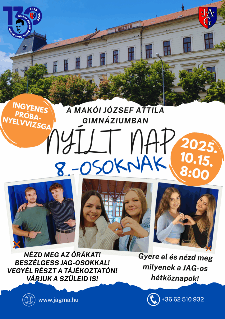 Ha 8. osztályos vagy és célod a továbbtanulás, illetve az egyetemi diploma, legyél JAG-os!