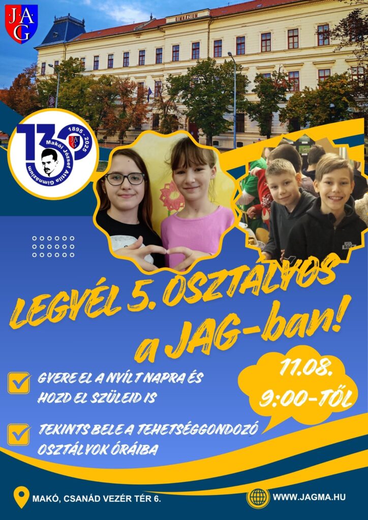 A 4. és a 8. oszátlyosok számára az ingyenes felvételi felkészítők november 24-től kezdődnek, jelentkezni ezekre még mindig lehetséges a jag@jag.mako.hu e-mail címen.