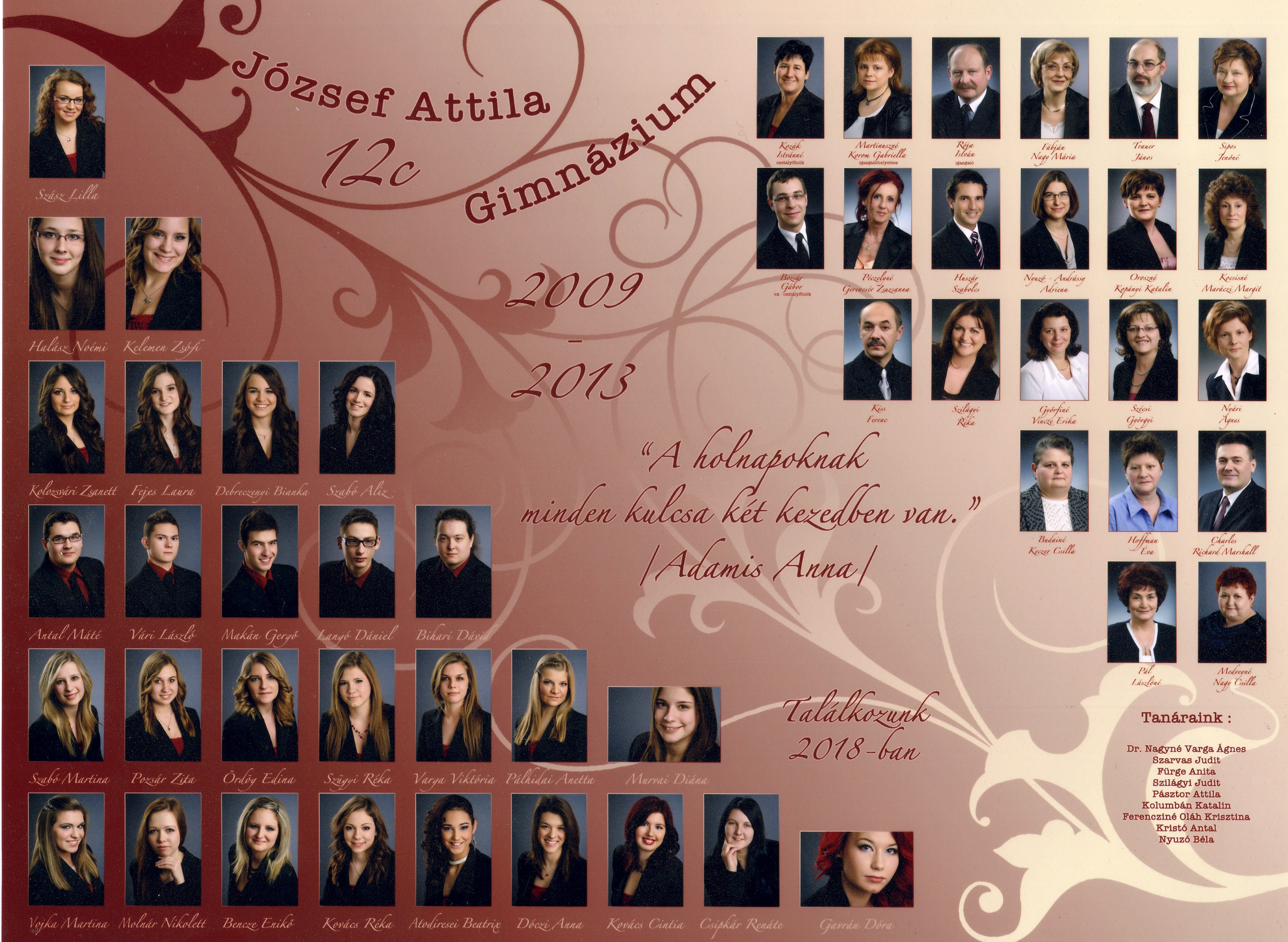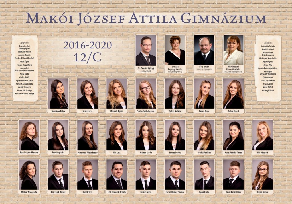 2016-2020. 12.C Osztályfőnök: Dr. Palotás György Diákok: Bálint Natália, Bencze Dorina, Bende Flóra, Bozsó Ágnes Mariann, Csehó Mihály Sándor, Csjernyik Balázs, Dobsa Kolett, Győri Csaba, Kardos Máté, Kiss Lola, Kiss Nikolett, Kurai Kevin Márk, Márton Zsófia, Martonosi Alexa Eszter, Mészáros Petra, Mihalek Ágnes, Molnár Margaréta, Móricz Adrienn, Nagy Rebeka Tímea, Olajos Jázmin, Rudolf Erik, Szabó Gréta Renáta, Szűcs Lucia, Tóth Boglárka, Tóth Dominik Renátó,