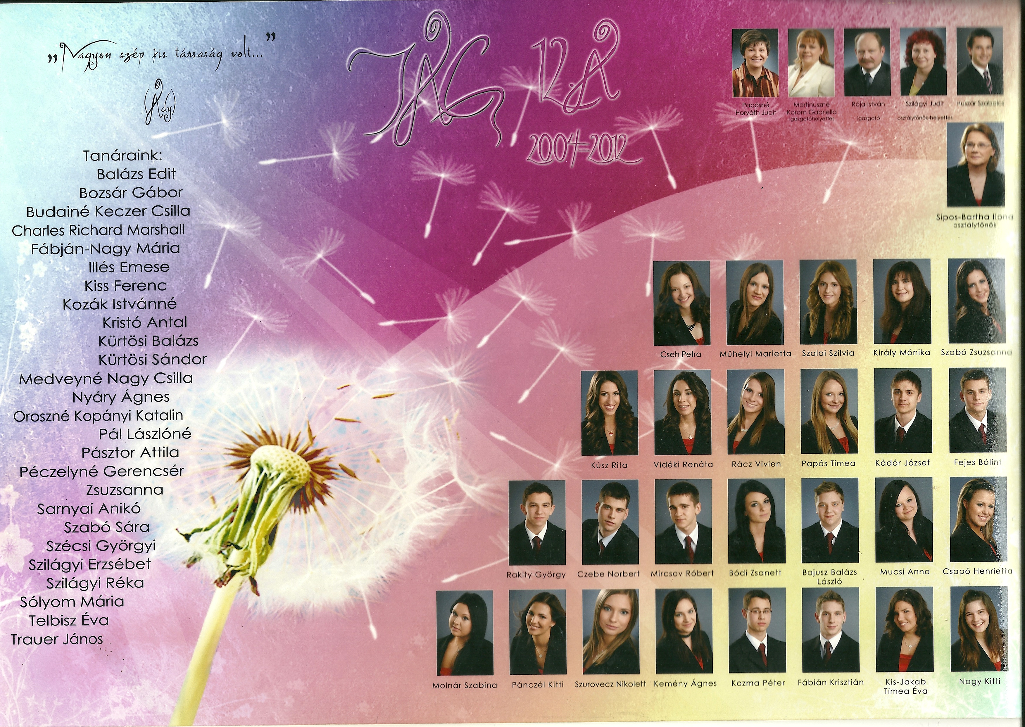 2008-2016 12. A Osztályfőnök: Papósné Horváth Judit, Sipos Jenőné, Budainé Keczer Csilla Diákok: BANYÓ ANITA MÁRIA,